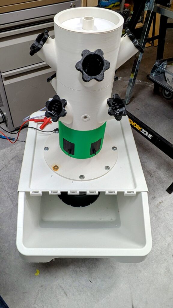 Der Funktionstest des Grundkonzepts ist erfolgreich abgeschlossen – das Prinzip funktioniert, und ich bin sehr zufrieden damit, wie sich das Ganze entwickelt. Die ersten Teile wurden bereits in PETG gedruckt und haben den Praxistest bestanden. PETG ist für ein Hydroponik-Projekt natürlich die richtige Wahl: wasserbeständig, stabil und langlebig.